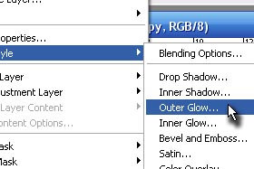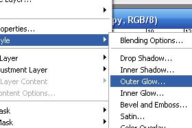 ![]() Kliknite na Layer, Layer Style in izberite Outer Glow...