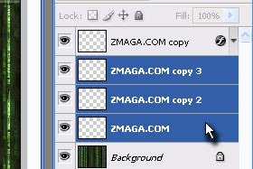 ![]() Označite sedaj vse te tri layerje (z efektom Blur) in pritisnite tipki CTRL + E, da jih boste združili. |