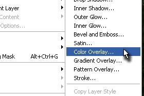 ![]() Kliknite na Layer, Layer Style in izberite Color Overlay. |