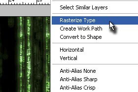 ![]() Kliknite na njega z desnim miškinim gumbom in izberite Rasterize Type. |