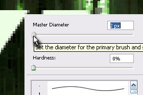 ![]() Kliknite sedaj z desnim miškinim gumbom na sliko in izberite velikost čopiča (jaz sem izbral 2piki). |
