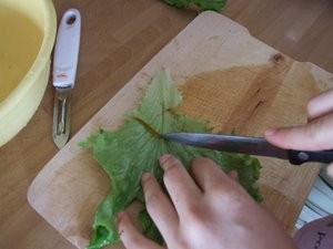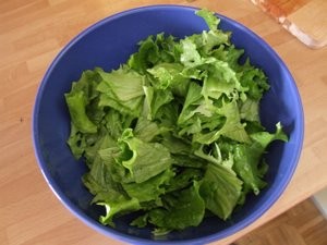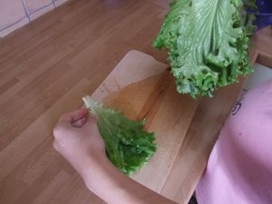 Jaz za 2 osebi porabim približno pol glave srednje velike solate. |