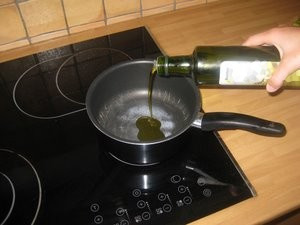 Vzemite posodo in vlijte žlico olivnega olja (ali katerokoli drugo maščobo). |