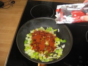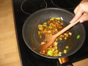 Premešajte, tudi paprika naj se praži nekaj minut. |