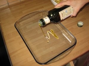 Vzemite pekač in ga namastite z olivnim oljem. |