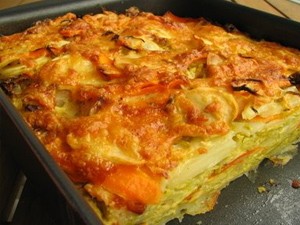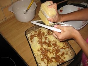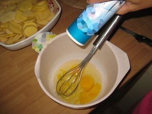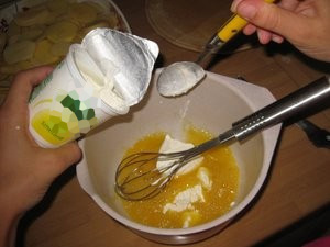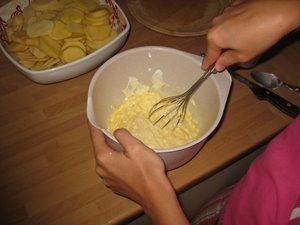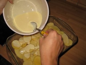 In zopet čez zložite plast krompirja. Prelijete ponovno s jajčno polivko. |