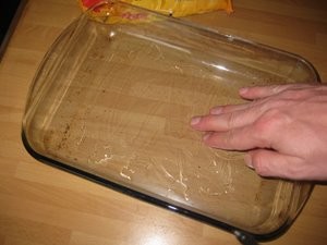 Z prsti razmažite olje po celem pekaču.