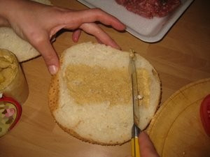 Pripravite gorčicoin jo namažite na notranji del ene stranice kruha (glej sliko). |