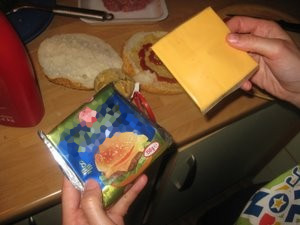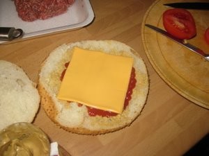 Sir položite na stranico kruha, kjer ste jo namazali z gorčico in dodali ketchup. |