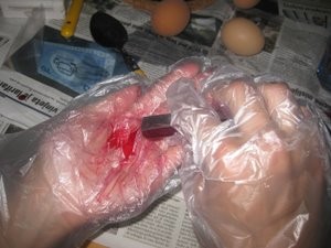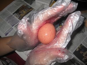 Potem pa jajce pobarvajte z rolanjem jajca med dlanmi (glej sliko). |