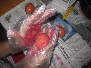 Poleg barv Marmory sem dobil tudi rokavice za zaščito od barvanja. |