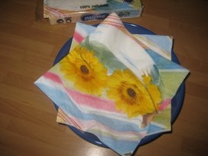 Pripravite sedaj nek krožnik in vanj postavite prtiček ali dva. |