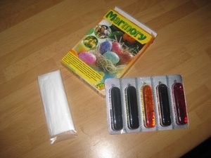 Med kuhanjem jajc, bomo pripravili vse potrebno za barvanje. |