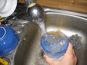 Vzemite kozarec in v njega natočite vrelo vodo. |
