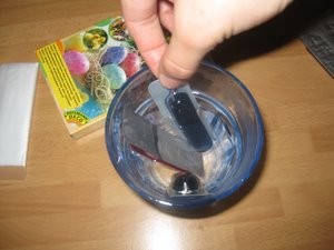 Nato pa barve Marmory postavite v kozarec z vročo vodo, da se bo barva stopila. |