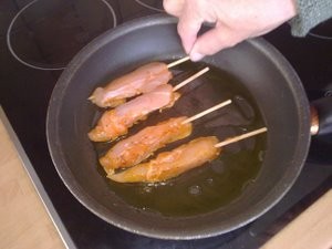 Vzemite sedaj piščančja pikantna nabodalca. |