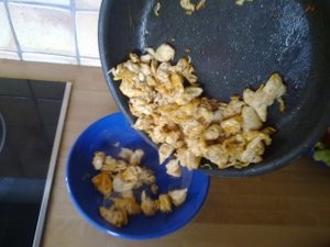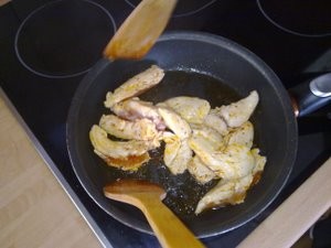 Meso mešajte, da bo dobil zlato rjavo barvo in ga stresite v nek krožnik. |