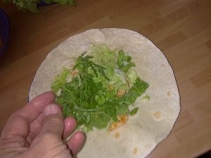 Sedaj pa tortiljo prepognite in zavijte, kakor je razvidno na sliki. |