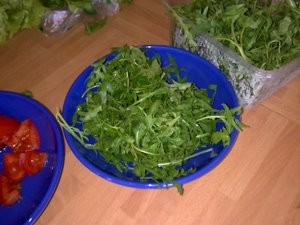 Pripravite rukolo, jo umijte in tudi njo postavite v nek manjši krožnik. |