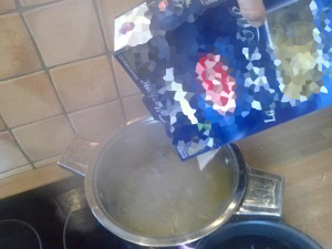 Ko bo voda v loncu zavrela, dodajte široke rezance in jih pustite pri miru, da se kuhajo.