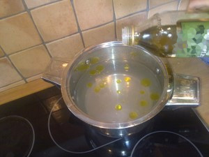 V lonec z vodo dodajte še tri žličke olivnega olja. |
