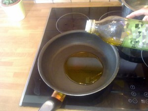 Vzemite ponev in jo postavite na kuhalno ploščo z nastavljeno skoraj najvišjo temperaturo. |
