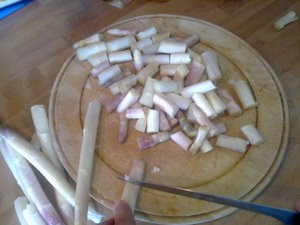 Vse skupaj premešajte in nato dodajte prej pripravljene šparglje. |