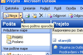 Kliknite na puščico navzdol poleg gumba za novo poštno sporočilo.