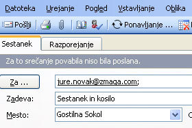 V polje Za vpišite prejemnikov e-poštni naslov, v polje Zadeva vpišite zakaj se gre in v polje Mesto lokacijo, kjer boste sestankovali.
