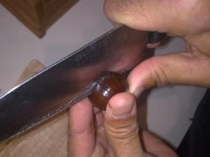 Kostanj lahko zrežeš na obeh straneh za lažje lupanje.