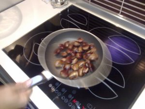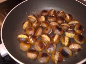 Kostanj se peče okoli 15 do 20 minut zato kostanj na ponvi vsake toliko časa premešajte.