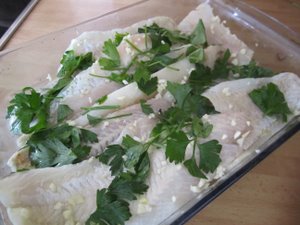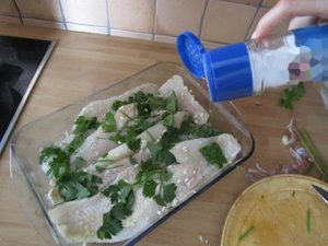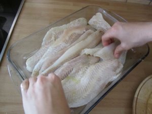 To naredite tudi z ostalimi fileji osliča in jih postavite v pekač.