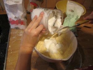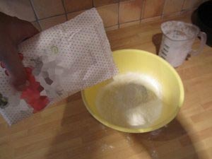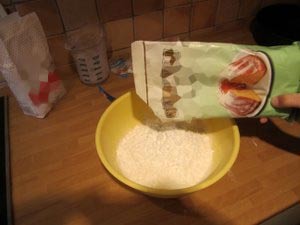 Natresite moko v plastično posodo.