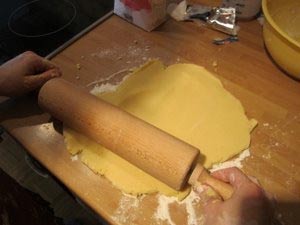 Sedaj eno polovico testa zvalajte na pomokani deski. |