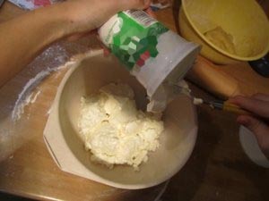 Za nadev pripravite skuto, ki jo dajte v plastično posodo. |