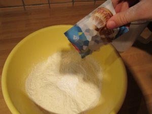 Dodajte pol vrečke pecilnega praška. |