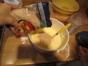 Dodajte še drobtinice in zopet premešajte. |