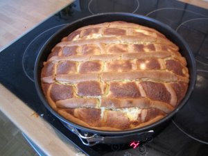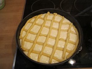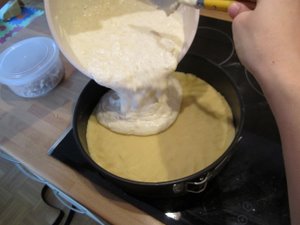Sedaj prelijte skutin nadev v pekač in ga zgladite. |