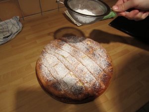 Sedaj jo še potresite z žlico sladkorja v prahu. |