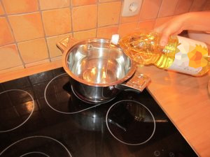 Sedaj pripravite posodo v katero vlijete malo olja. |