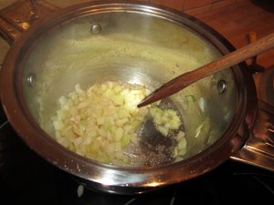 Čebulo pražite dokler ne postekleni, vmes pogosto premešajte. |