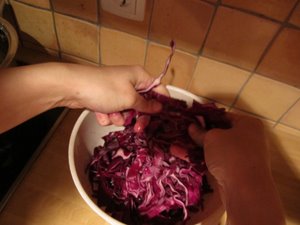 Če se zelje drži skupaj, ga razdrobite, ko ga date v posodo. |