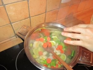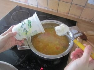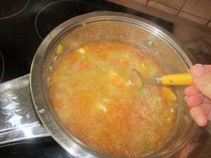 Vse skupaj dobro premešajte in juha je pripravljena. |