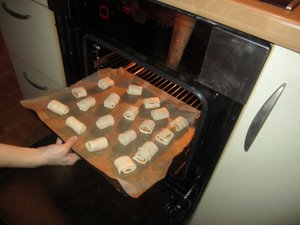 In po petih minutah vstavite pripravljene polžke v pečico ter jo seveda zaprite.