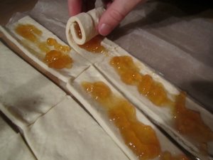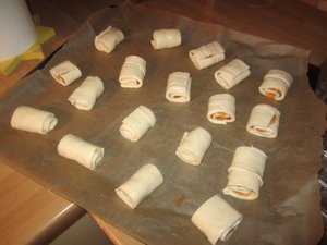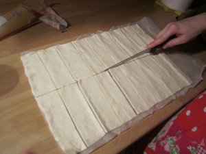 Nato pa narezane dele listnatega testa zavijte skupaj ...