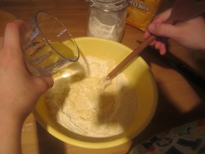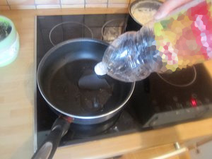 Vse skupaj začnite mešati in vmes dodajajte vodo ... |