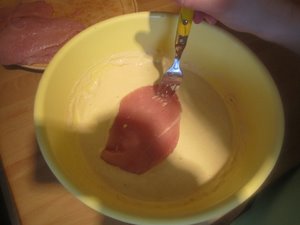 ... pripravljene piščančje zrezke namočite v pripravljeno zmes. |