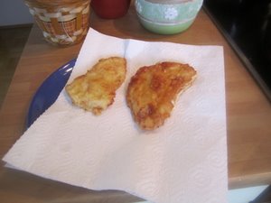 Nato jih namočite iz obeh strani ter malenkost otresite, da zmesi na zrezkih ne bi bilo preveč. |