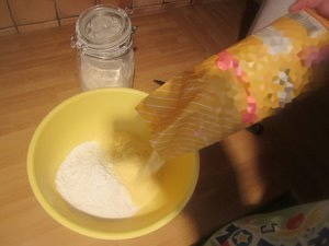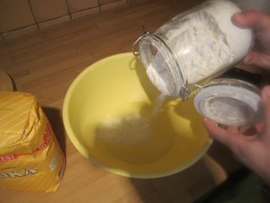 Vzemite plastično posodo in dodajte 200 gramov pšenične moke ... |