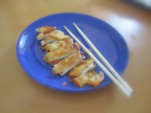 Pečene zrezke z pomočjo vilice primite in jih postavite na krožnik. |